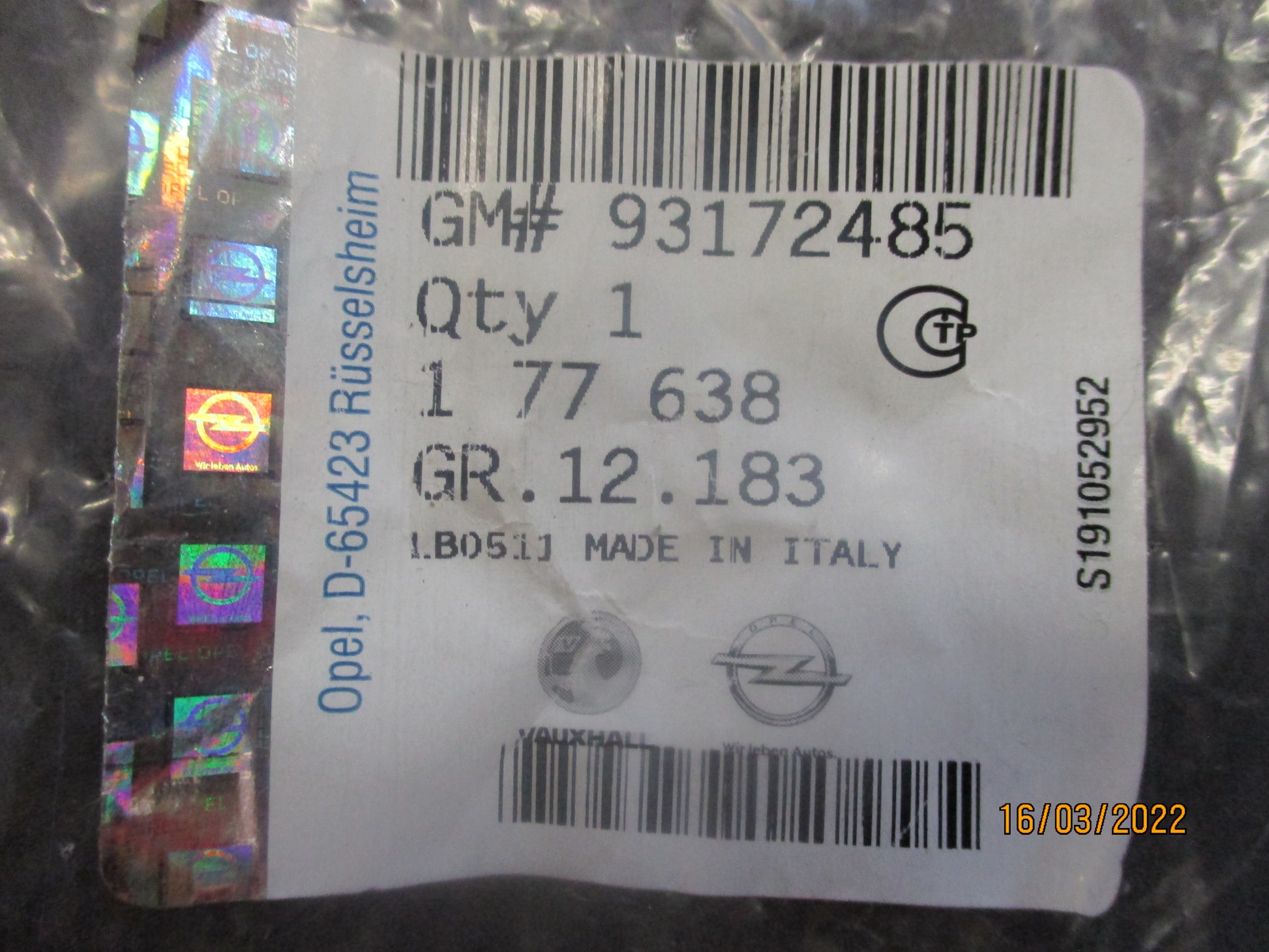 Part no. 93172485