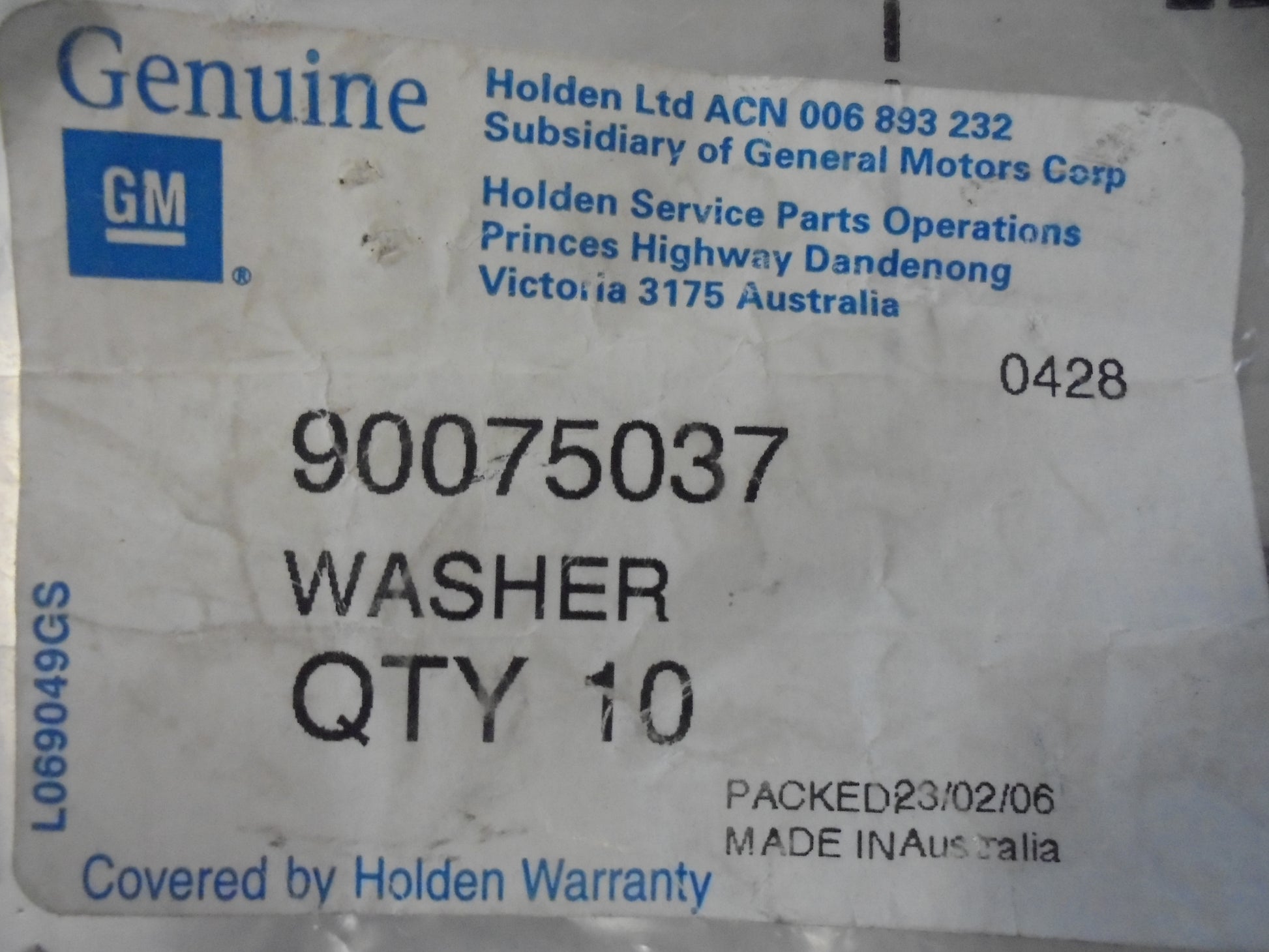 Part No 90075037