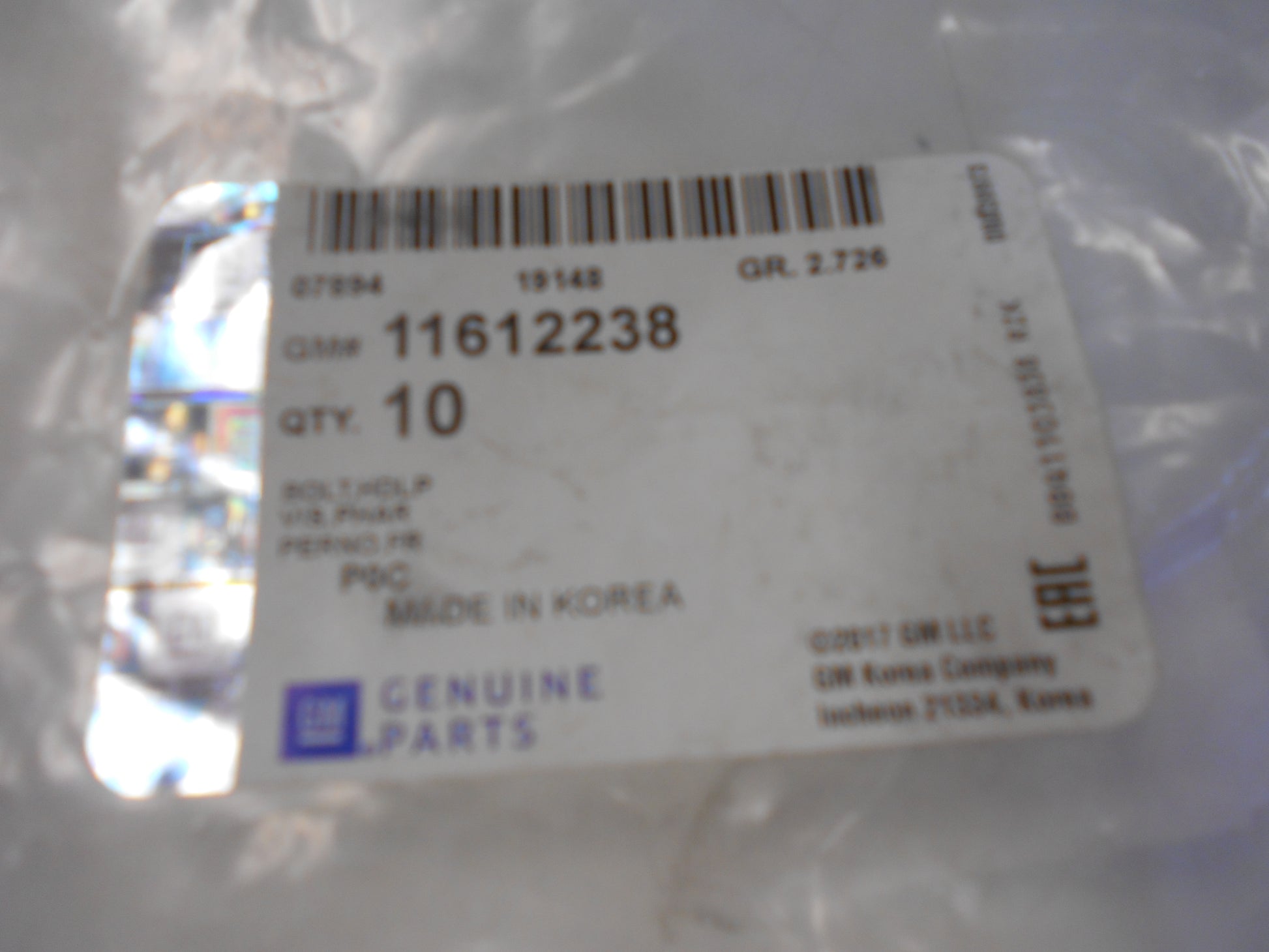 Part NO 11612238
