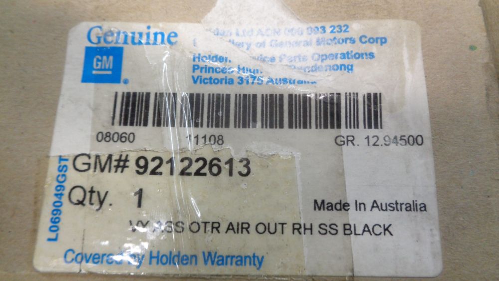 Holden Commodore VY SS Genuine Front Right Hand Door Side Air Vent Assy Black New Part