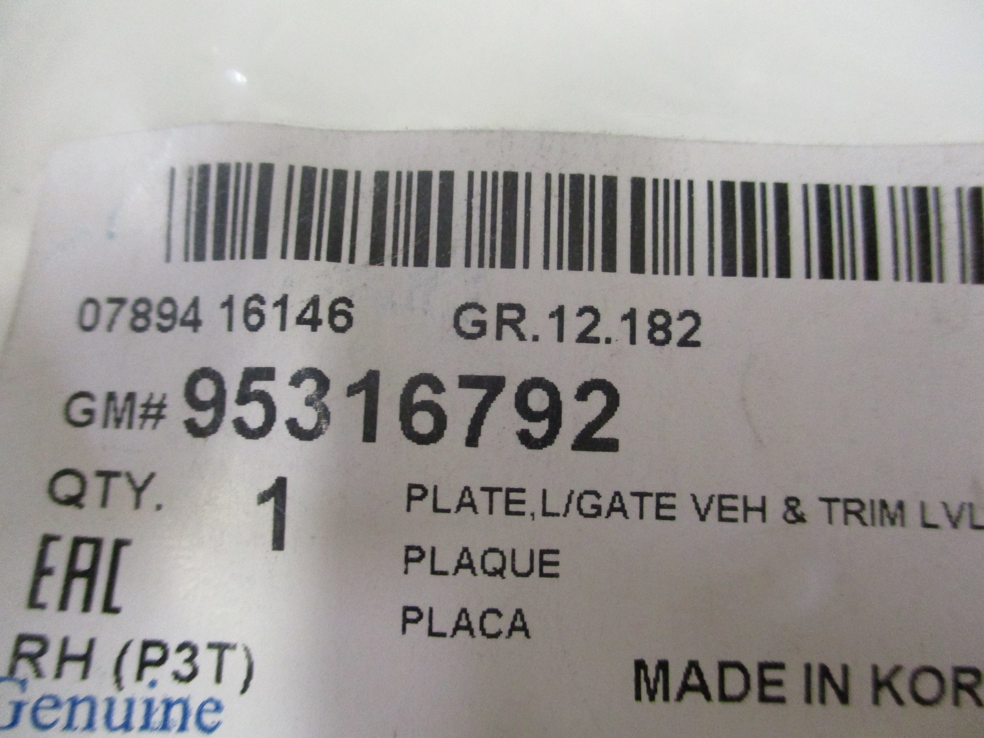 Part No. 95316792