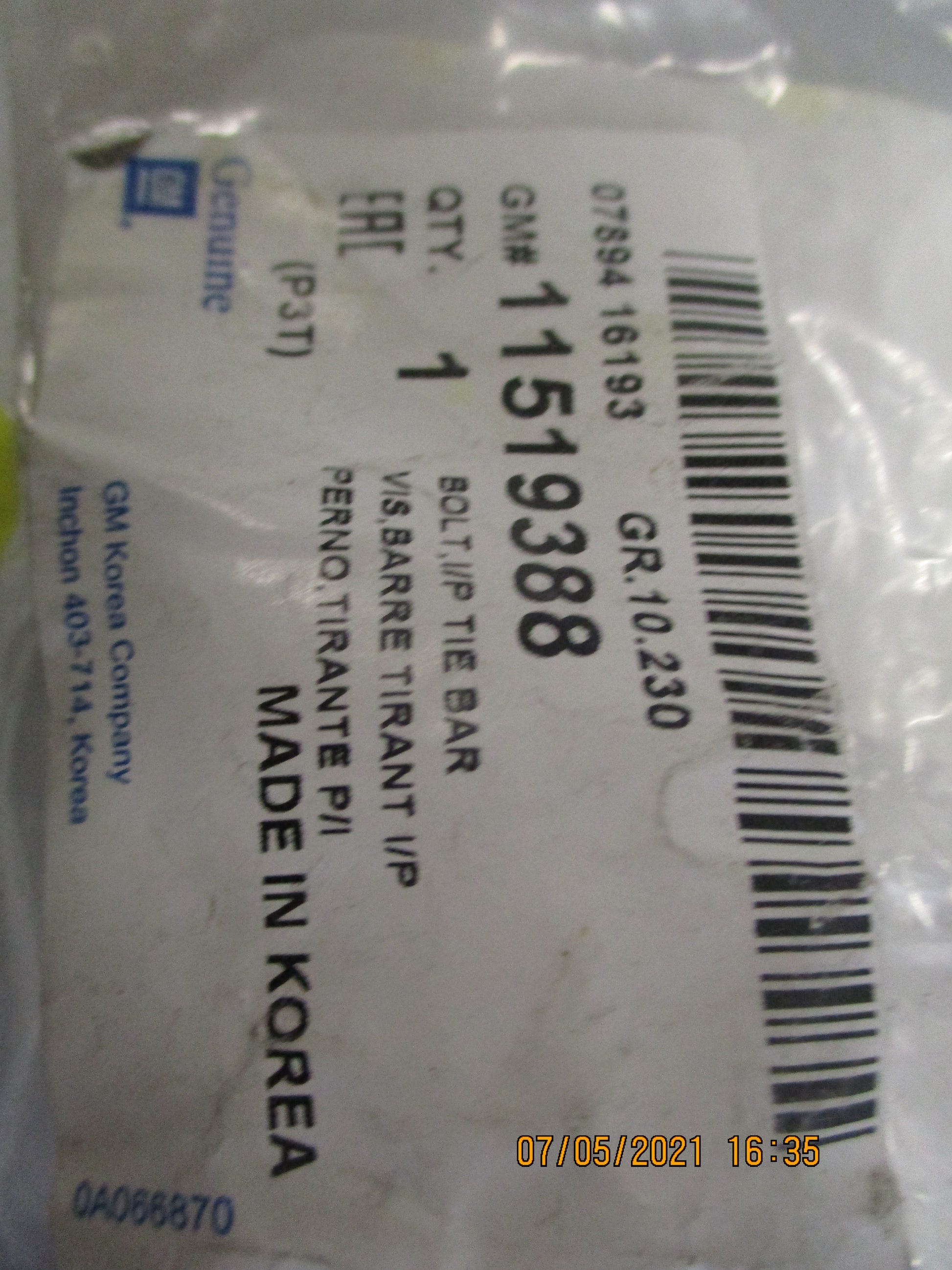 Part NO 11519388