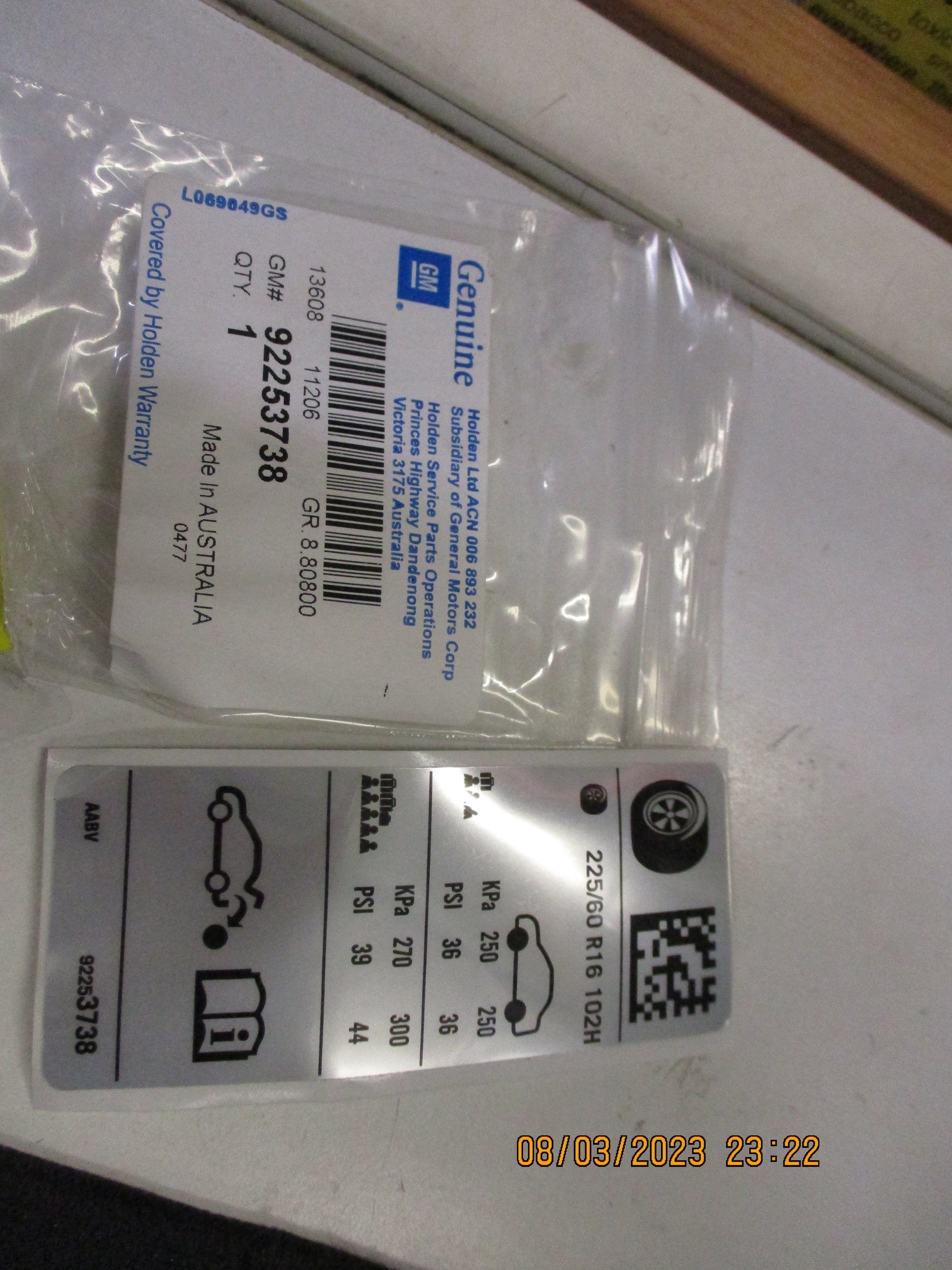 Holden VE-VF Commodore Genuine Tyre Decal Placard 19Inch Rim New Part