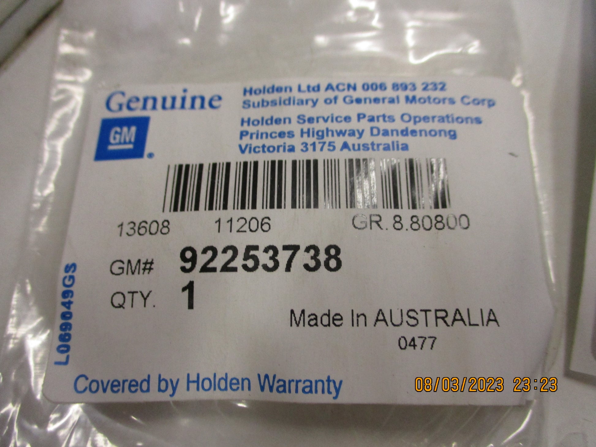 Part No 92253738
