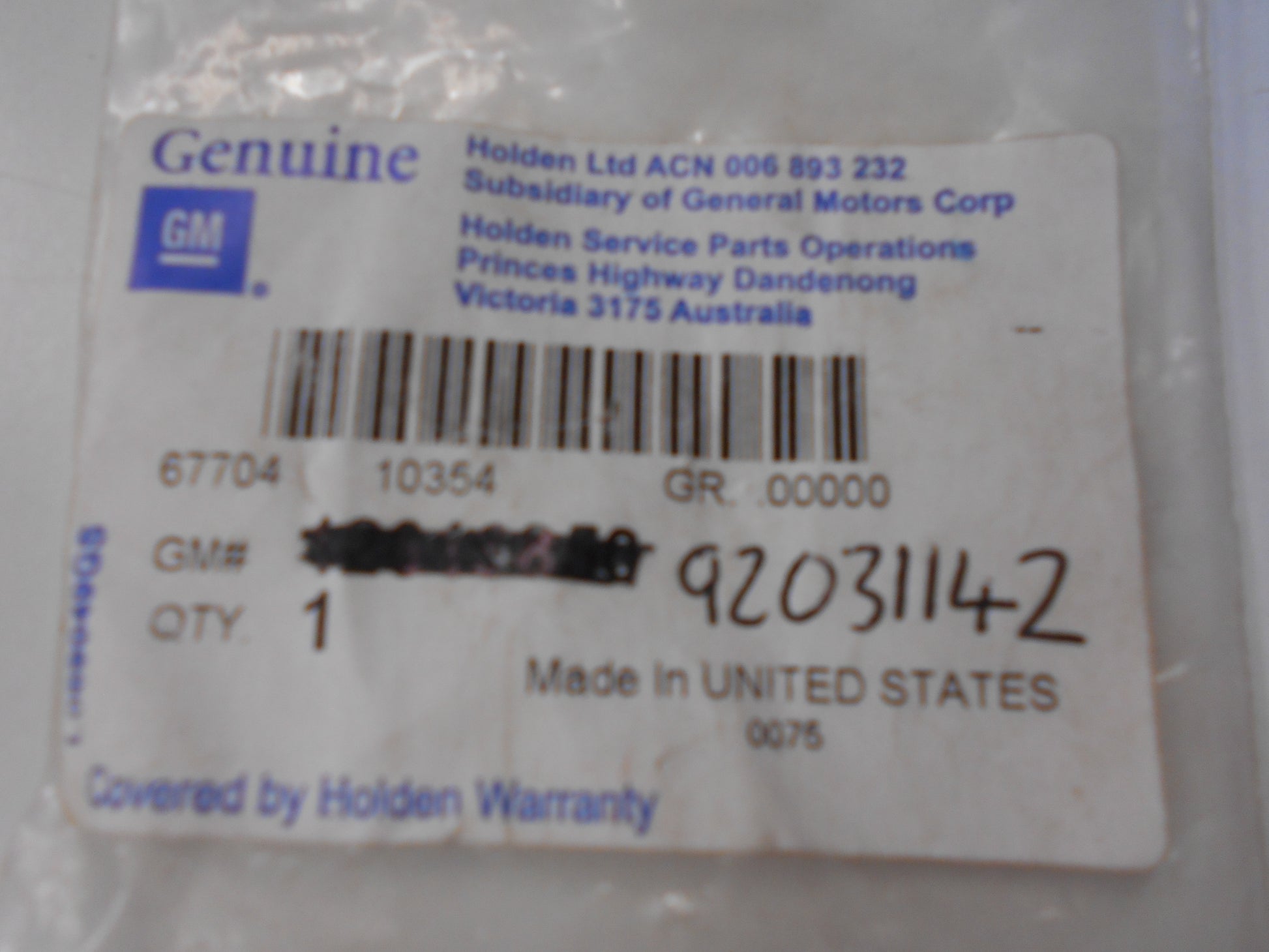 Part NO 92031142