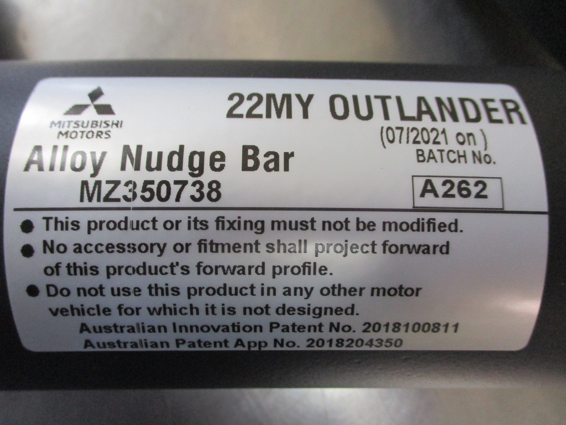 Mitsubishi Outlander Genuine Black Alloy Nudge Bar (Replacement Only) New Part