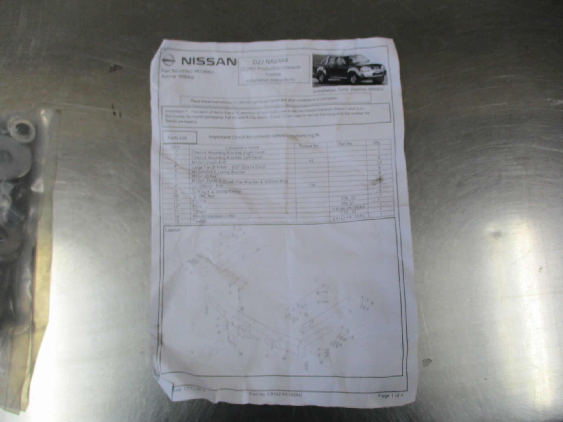 Nissan D22 Navara Tow Bar Partial Fitting Kit New