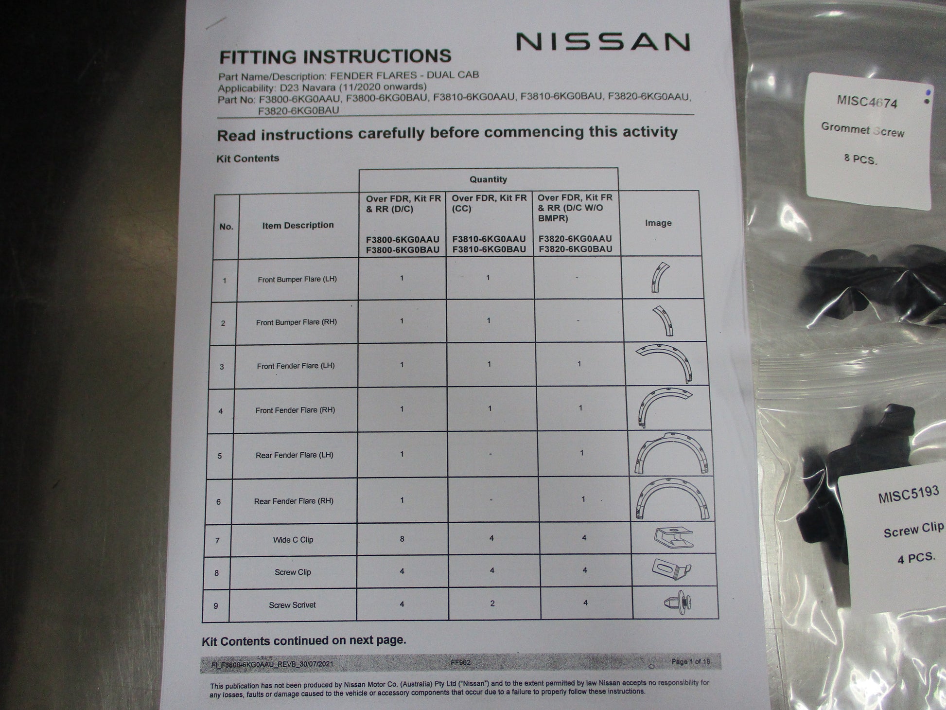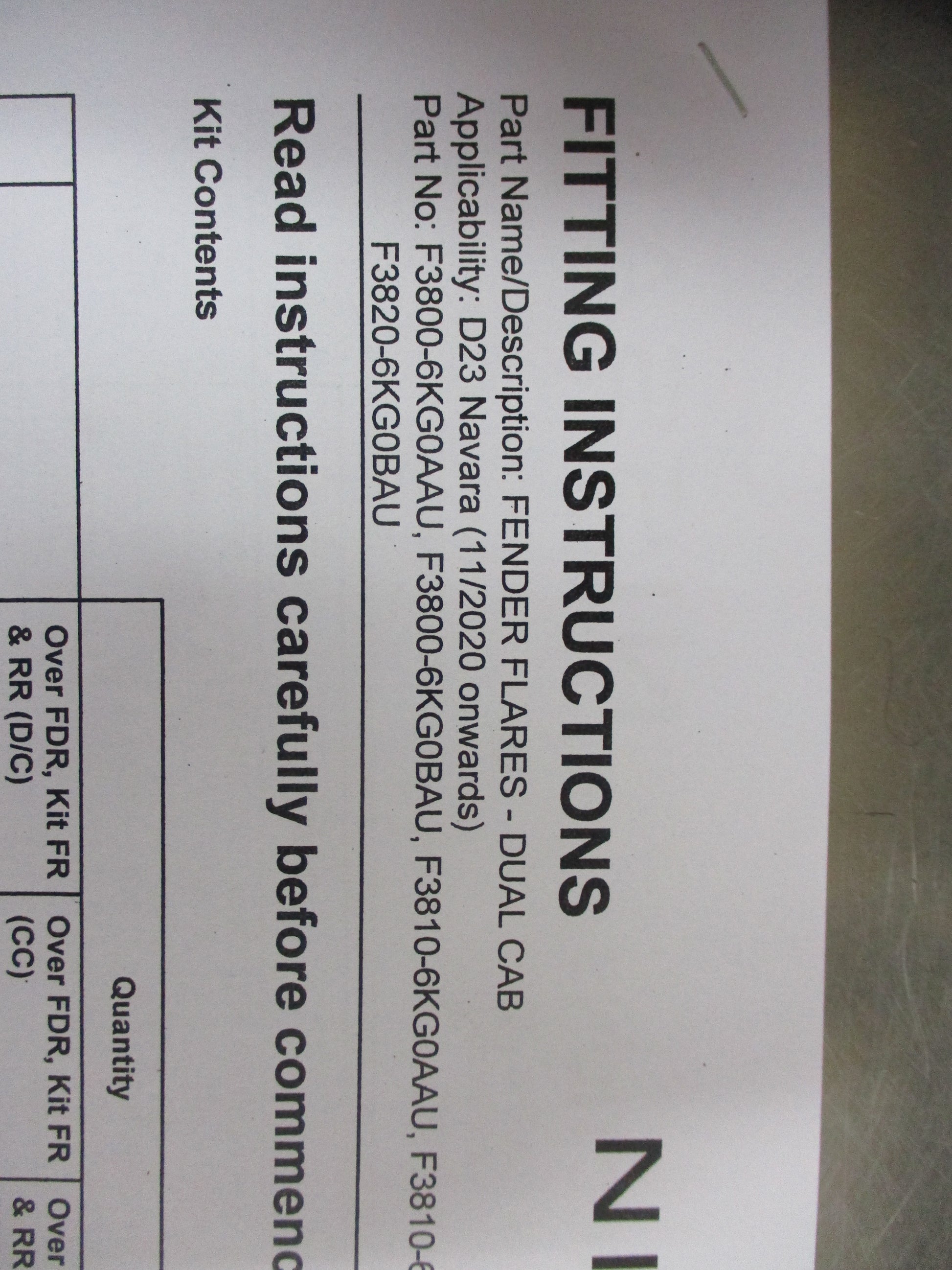 Nissan Navara D23 NP300 Genuine 4 Piece (W/Out Bull Bar) Kit (Unpainted)New Part