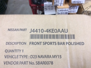Nissan Navara D23 NP300 Genuine Polished sports bar new in box suits all dual cab