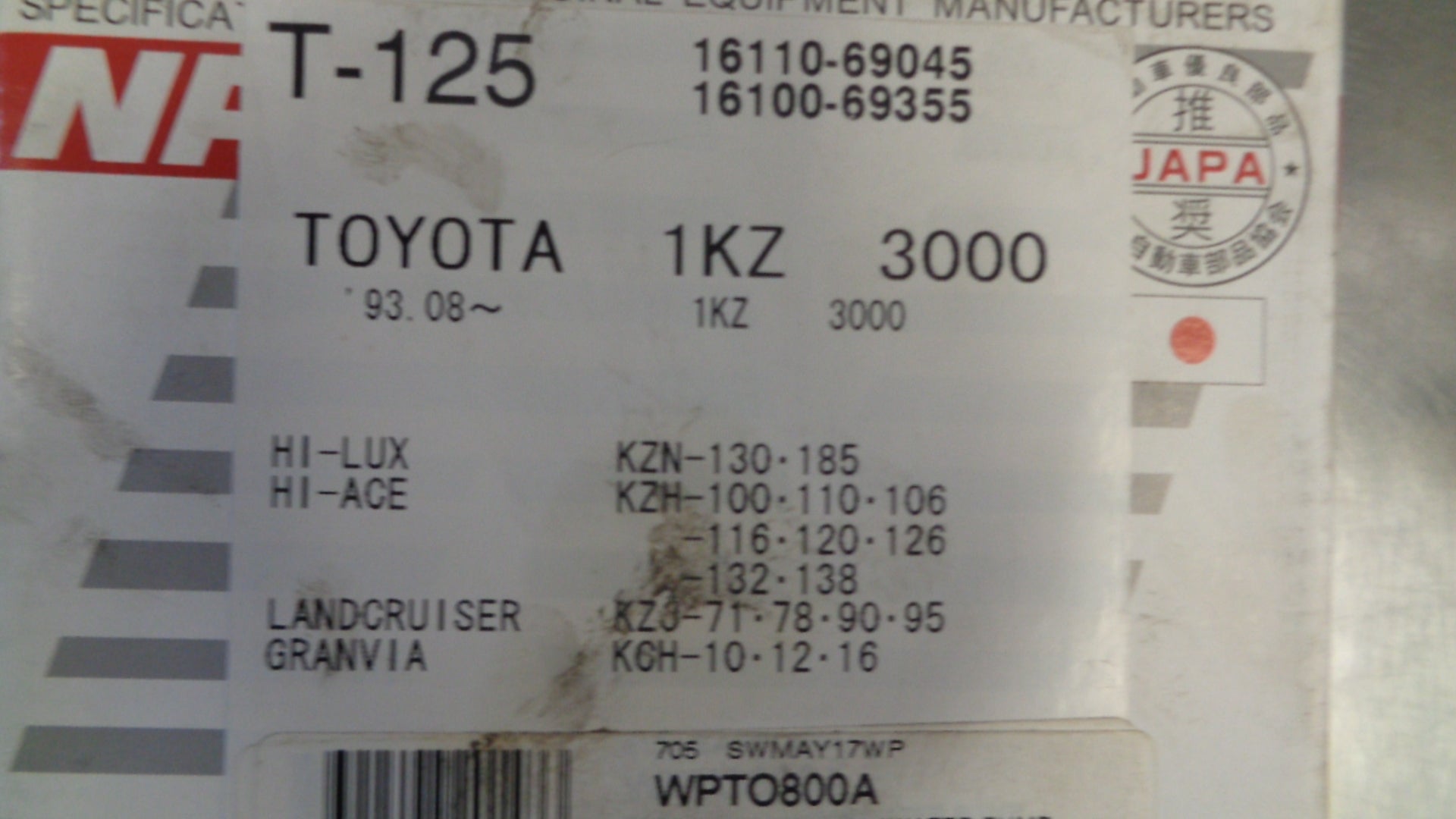 Part No: T-125 ( interchangeable with 16110-69045/16100-69355)
