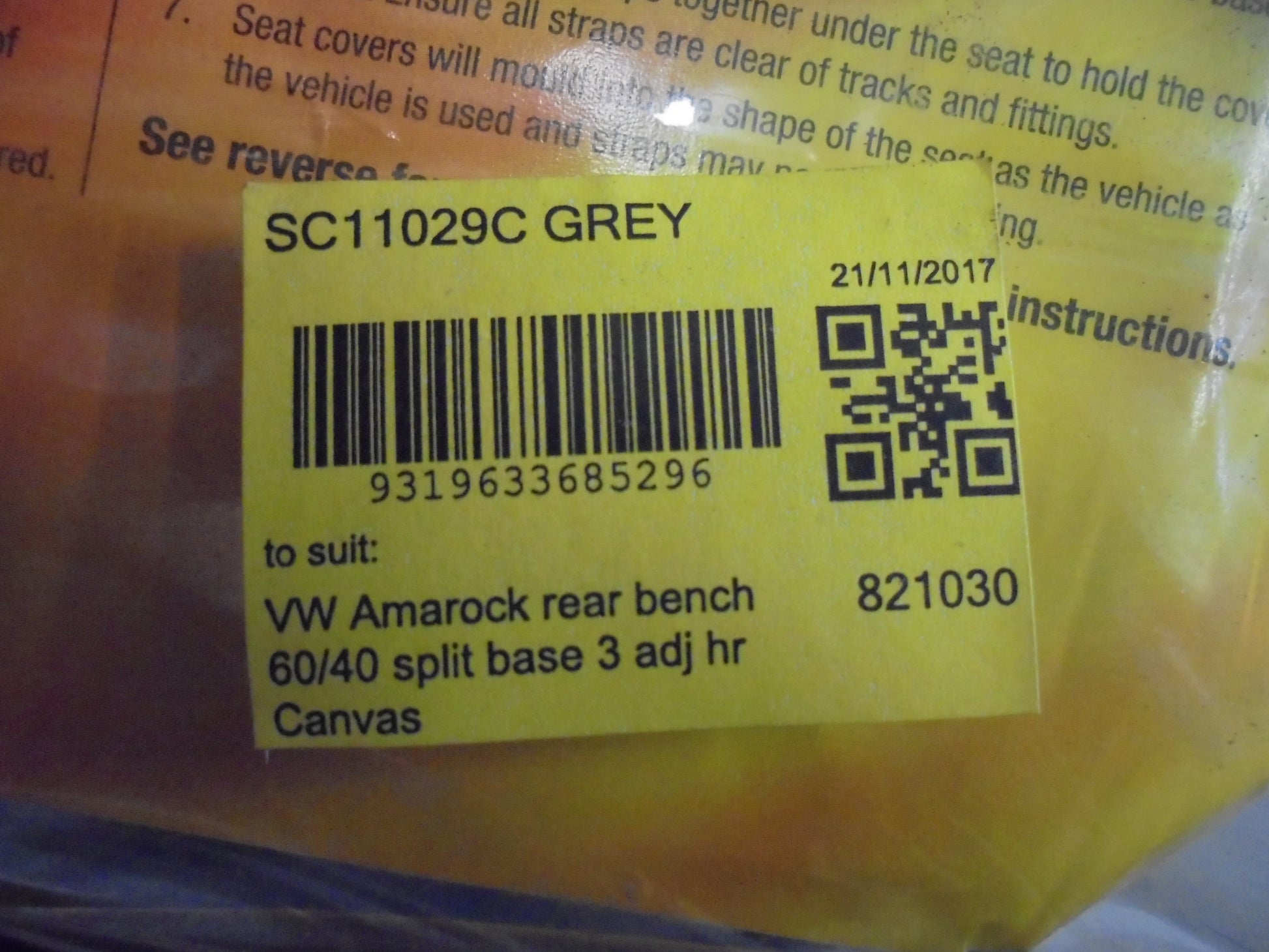 Shevron Rear 60/40 Canvas Seat Covers Suits Volkswagen Amarok New Part