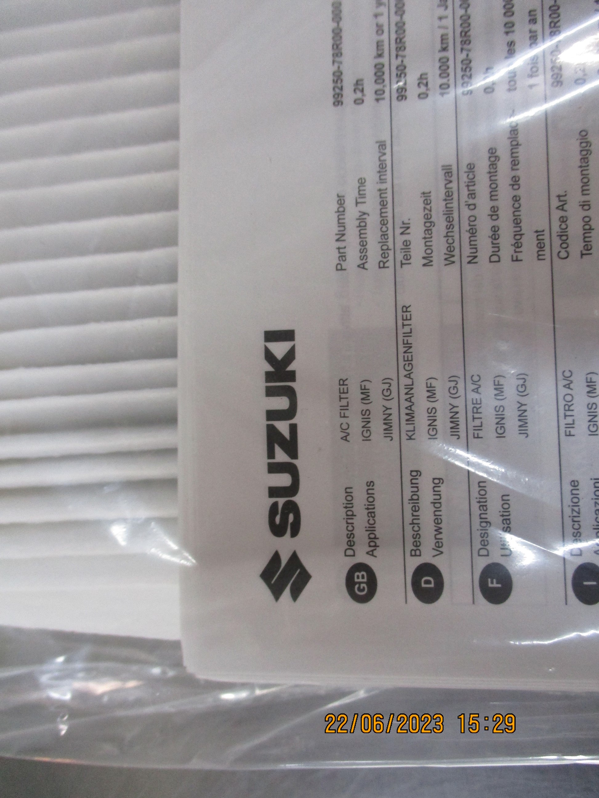 Suzuki Jimny Genuine A/C Cabin Filter New Part